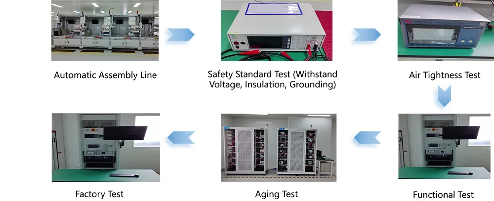 Tá deimhnithe údarásacha faighte ag an táirge sa bhaile agus thar lear, lena n-áirítear CCC (Deimhniú Éigeantach na Síne), CE (An tAontas Eorpach), UL (Stáit Aontaithe Mheiriceá), agus EN50498. Comhlíonann sé caighdeáin NB/T33001-2025 agus GB31241-2014, ag cinntiú sábháilteacht leictreach agus comhoiriúnacht leictreamaighnéadach. Tá bonn táirgthe nua-aimseartha againn agus glacaimid le tithíocht ábhar ilchodach ABS+PC lasair-retardant le rátáil V0 agus cláir PCB fiberglass FR-4. Próiseáiltear eochair-alt solder ag baint úsáide as teicneolaíocht sádrála tonnta agus tá tástálacha déine déanta acu ar nós 5,000 timthriall ionsáite/astarraingthe, friotaíocht creathadh, agus friotaíocht creimeadh spraeála salainn. Déantar gach aonad faoi thástáil aosaithe lán-ualach 72 uair an chloig sula bhfágann siad an mhonarcha, ag baint amach ráta cáilíochta 100%. Tá córas cuimsitheach rialaithe cáilíochta bunaithe againn a chuireann ar chumas inrianaitheachta iomlán ó sholáthar amhábhar go seachadadh táirgí críochnaithe.